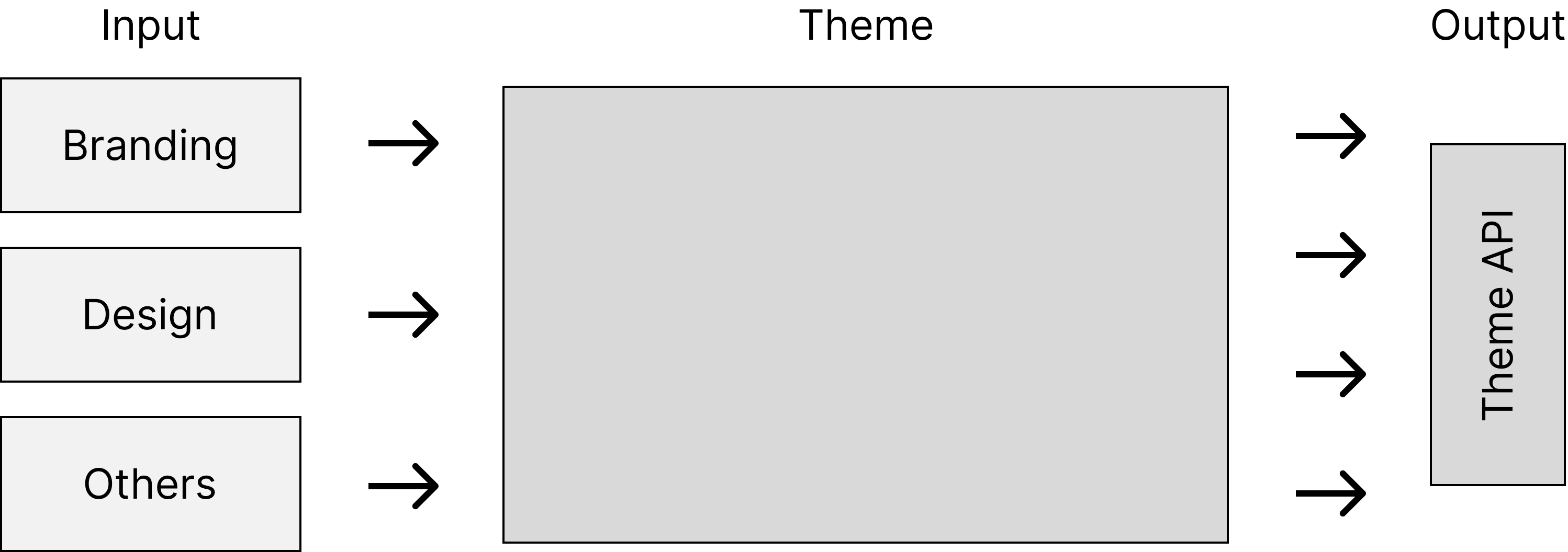 A theme is the playground and workshop for token designers to take the input from stakeholders, sprinkle in their secret spices, mix it up and produce output for token consumers.